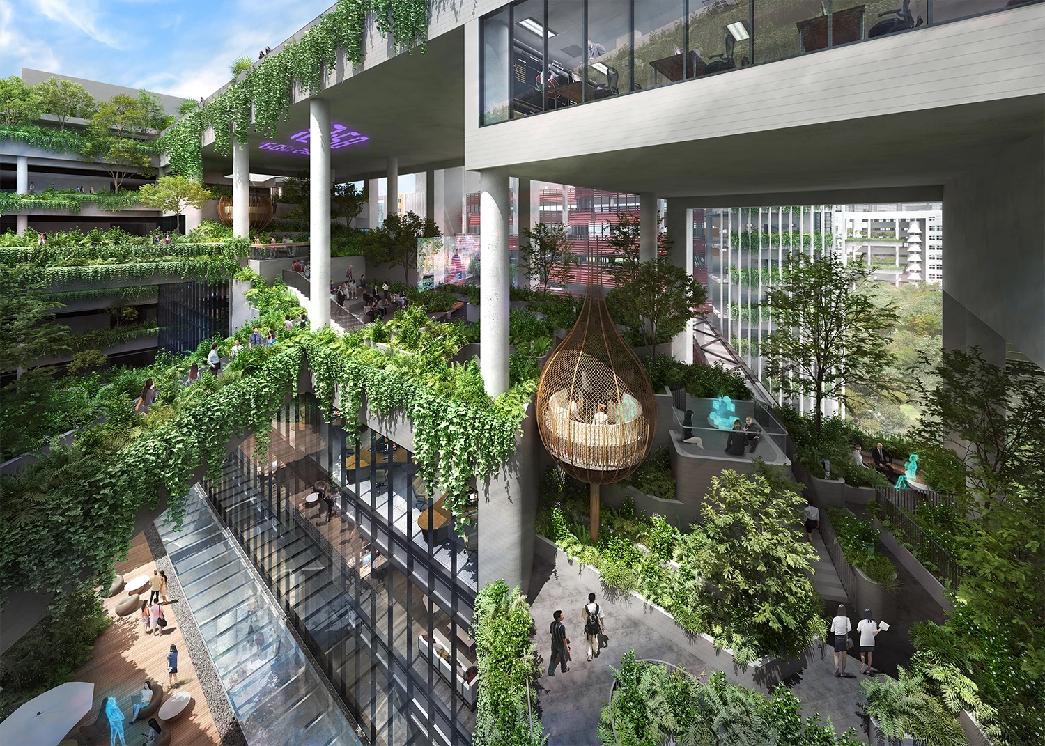 Spaces between blocks are designed to be biophilic.PDD’s initial design phase was awarded the Building and Construction Authority’s (BCA) Green Mark Platinum. It will open in stages from 2024 onwards.